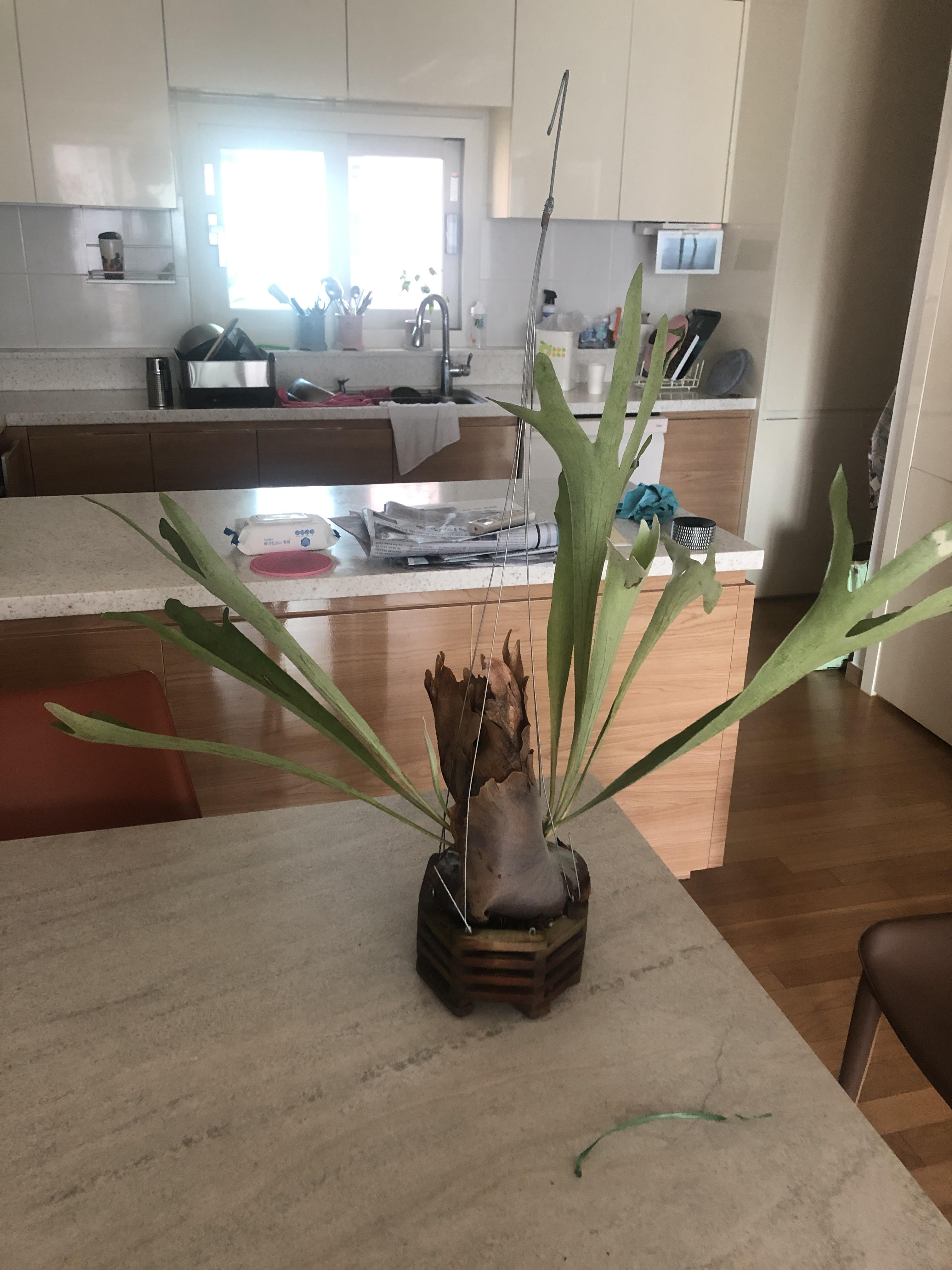 여러분 저기 영양잎 크기좀 보세요... 엄청 큽니다. 거의 제 머리통만한 사이즈를 자랑하는 영양잎. 무게가 상당한 박쥐란이 도착했네요.