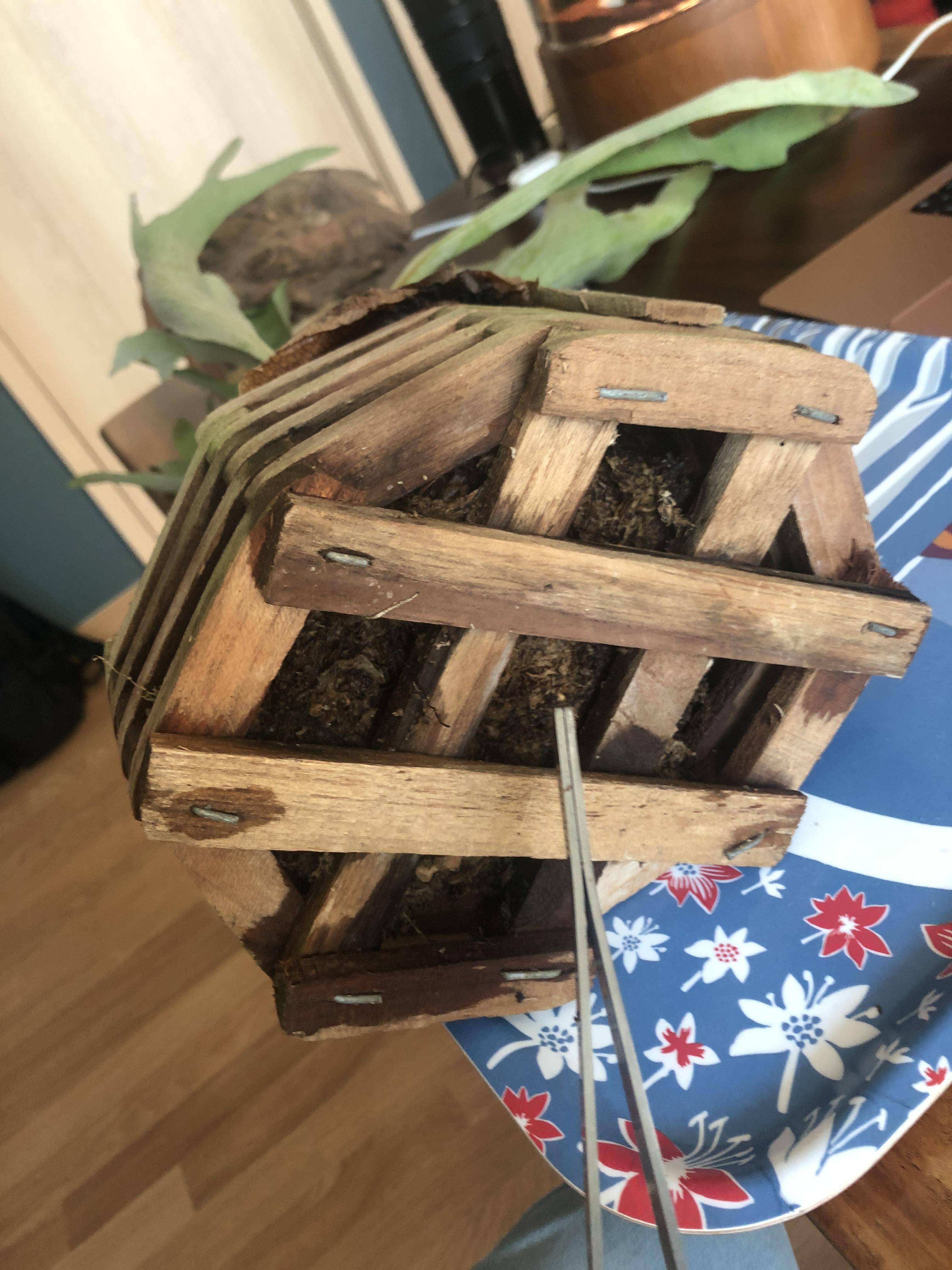 다이소 마끈을 하도 많이 감아 수태의 모습과 유목의 모습이 제대로 보이지 않네요.. 무슨 영광을 누려보겠다고 한 선택인지 모르겠습니다. 생각보다 박쥐란이 너무 커서 그렇습니다.