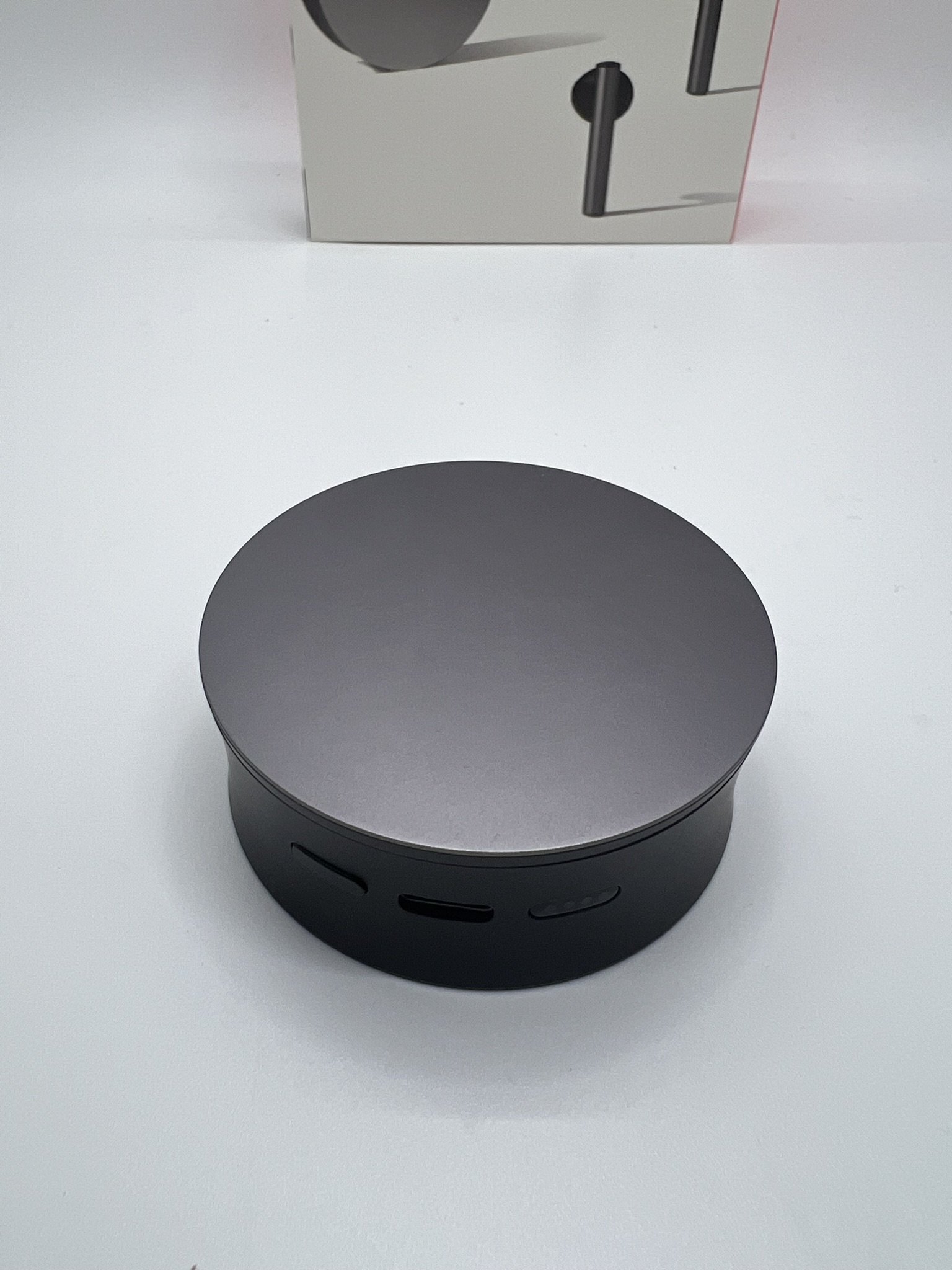 케이스의 디자인도 대단히 심플하다. 동그란 알루미늄은 마음을 편안하게 한다. 책상 어디에 올려두어도 하나의 오브제으로 기능을 해준다. 이어폰을 넣었다가 꺼냈다가 하는 것 마찬가지로 편안하다고 할 순 없다. 하지만, 그렇다고 아예 신경안 쓴 것 처럼 불편하다 역시 아니다.